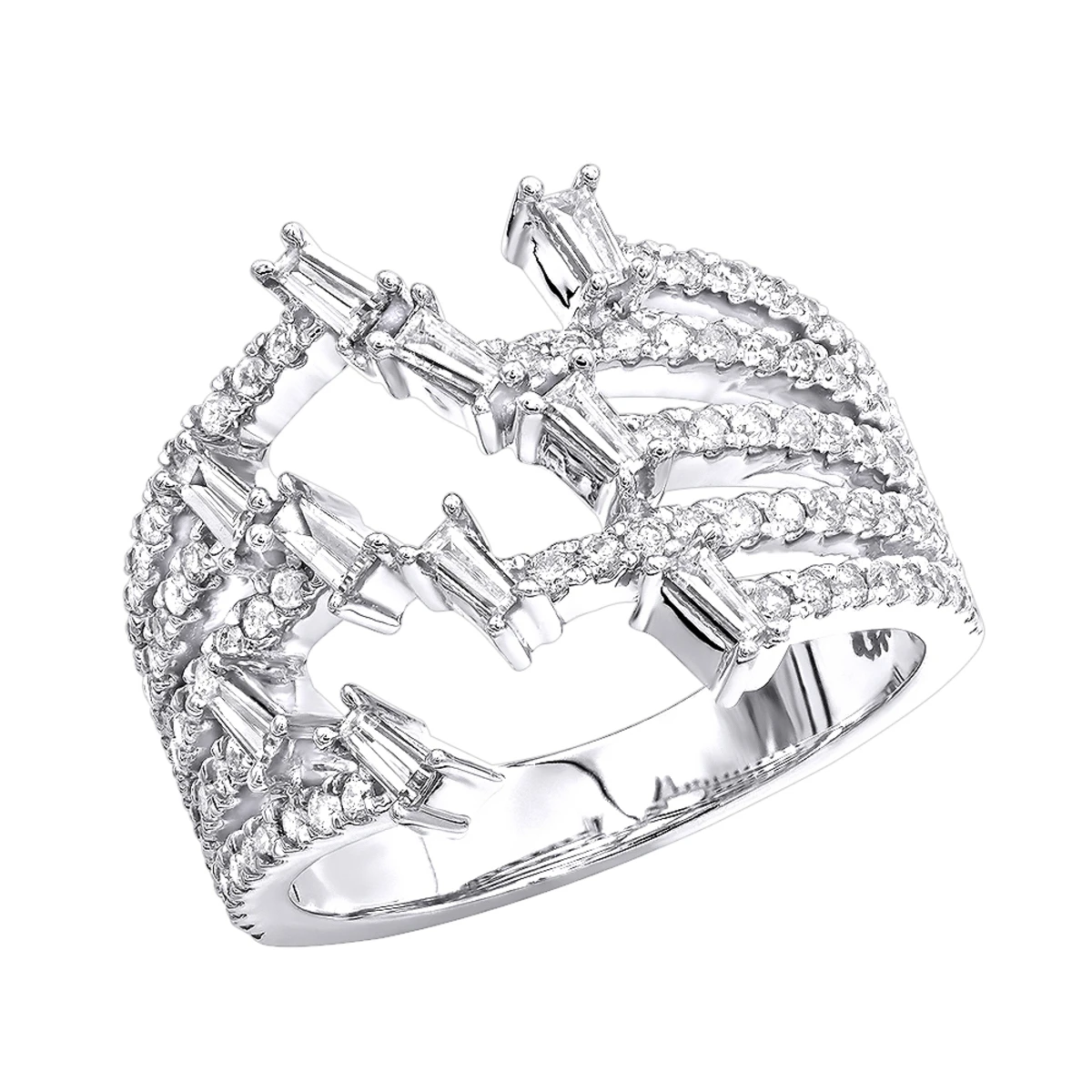 This unique 14k Gold designer Diamond Right Hand Ring for Women by Luxurman showcases 1.1 carats of masterfully set sparkling round cut and baguette cut diamonds. Very eye-catching ladies diamond ring can be worn as a cocktail diamond ring, fashion ring, right hand ring or a very unique diamond band. This gorgeous women’s diamond ring is available in 14K white, yellow and rose gold and will add an amazing sparkle to everyone’s jewelry collection!