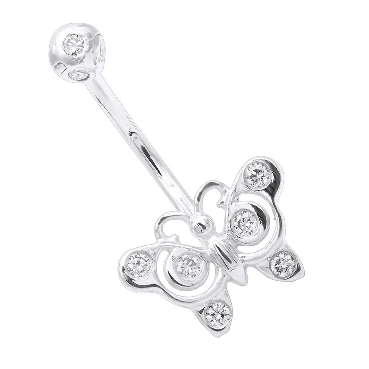 Genuine Diamond Body Jewelry! This 14K Gold Diamond Butterfly Belly Ring displays 0.40 ctw of sparkling bezel-set round diamonds. Featuring a lovely design and a highly polished gold finish, this 14K white gold belly button ring is available in 14K white, yellow, or rose gold and can be customized with different fancy color diamonds.