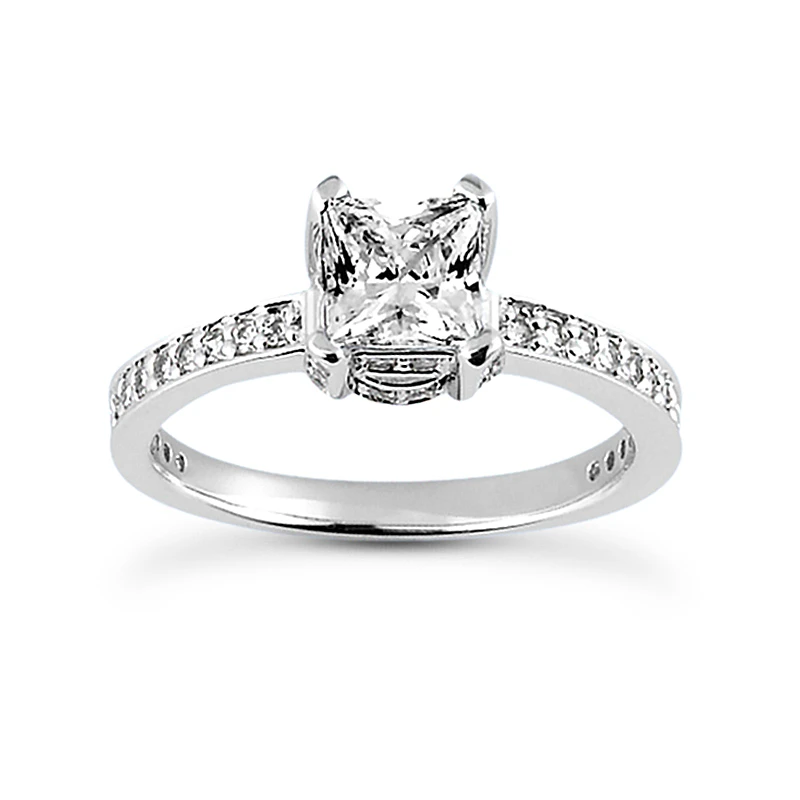 This 14K Diamond Engagement Ring showcases a 0.50 carat princess cut diamond in the center and 0.38 carats of round diamonds on the sides for a total of 0.88 carats of dazzling diamonds and is available in Platinum, 18k or 14k yellow, rose, white gold, various sizes; and can be customized with any color and quality diamonds. The center diamond can be from 0.50ct to 1.50ct (gold weight and number of stones may vary). Please note: it will take us 3-5 business days to make this ring for you so please plan accordingly. Please contact us at 212-398-3123 if your size or desired option is not listed.