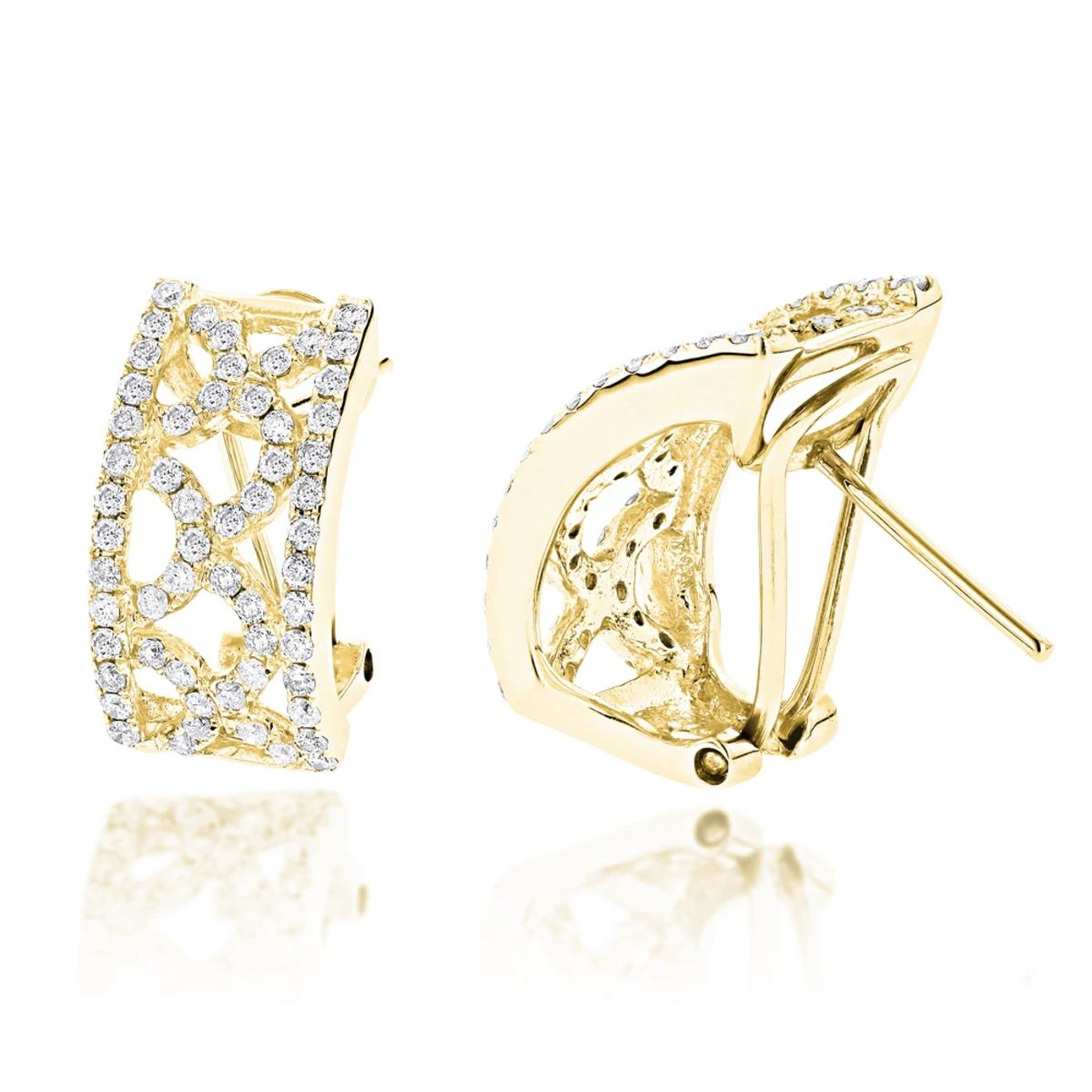These 14K Gold Ladies Diamond Earrings showcase 1.76 carats of sparkling round diamonds. Featuring a lovely design and a highly polished gold finish, these fabulous diamond earrings are available in 14K white, yellow and rose gold.