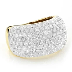Luxurious Pave Diamond Rings! This dazzling 14K Gold Round Diamond Band weighs approximately 9 grams and showcases 4 ctw of sparkling diamonds, each expertly set in a lustrous gold frame. Featuring a dome design, a highly polished gold finish, and a fine gallery back for comfortable wear, this magnificent ladies diamond ring is available in your choice of 14K white, yellow and rose gold.