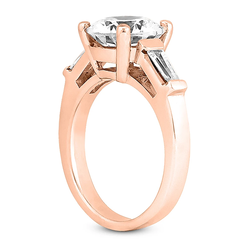 This 18K Gold Diamond Engagement Ring Set consists of a diamond engagement ring and matching band. The engagement ring showcases a 0.75 carat round diamond in the center and 0.24 carats of baguette cut diamonds on the sides for a total of 0.99 carats of dazzling diamonds. The band showcases 0.24 carats of dazzling baguette cut diamonds. This set is available in Platinum, 18k or 14k yellow, rose, white gold, various sizes, and can be customized with any color and quality diamonds. Please contact us if you would like to customize it.