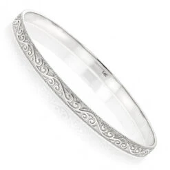 Solid 14K Yellow Gold Floral Bangle Bracelet For Women By Luxurman