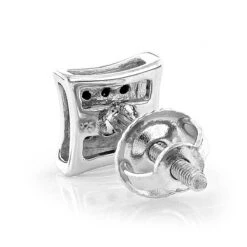 Real Black Diamond Stud Earrings Sterling Silver Square Kites 0.1ct