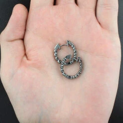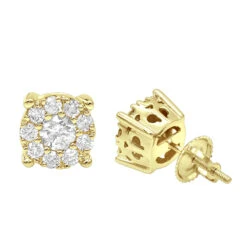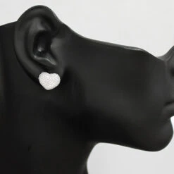 10K White Gold Pave Round Diamond Small Heart Earrings 0.1ct