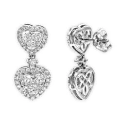 14K Rose Gold Diamond Double Heart Drop Earrings For Women 1.7ct By Luxurman