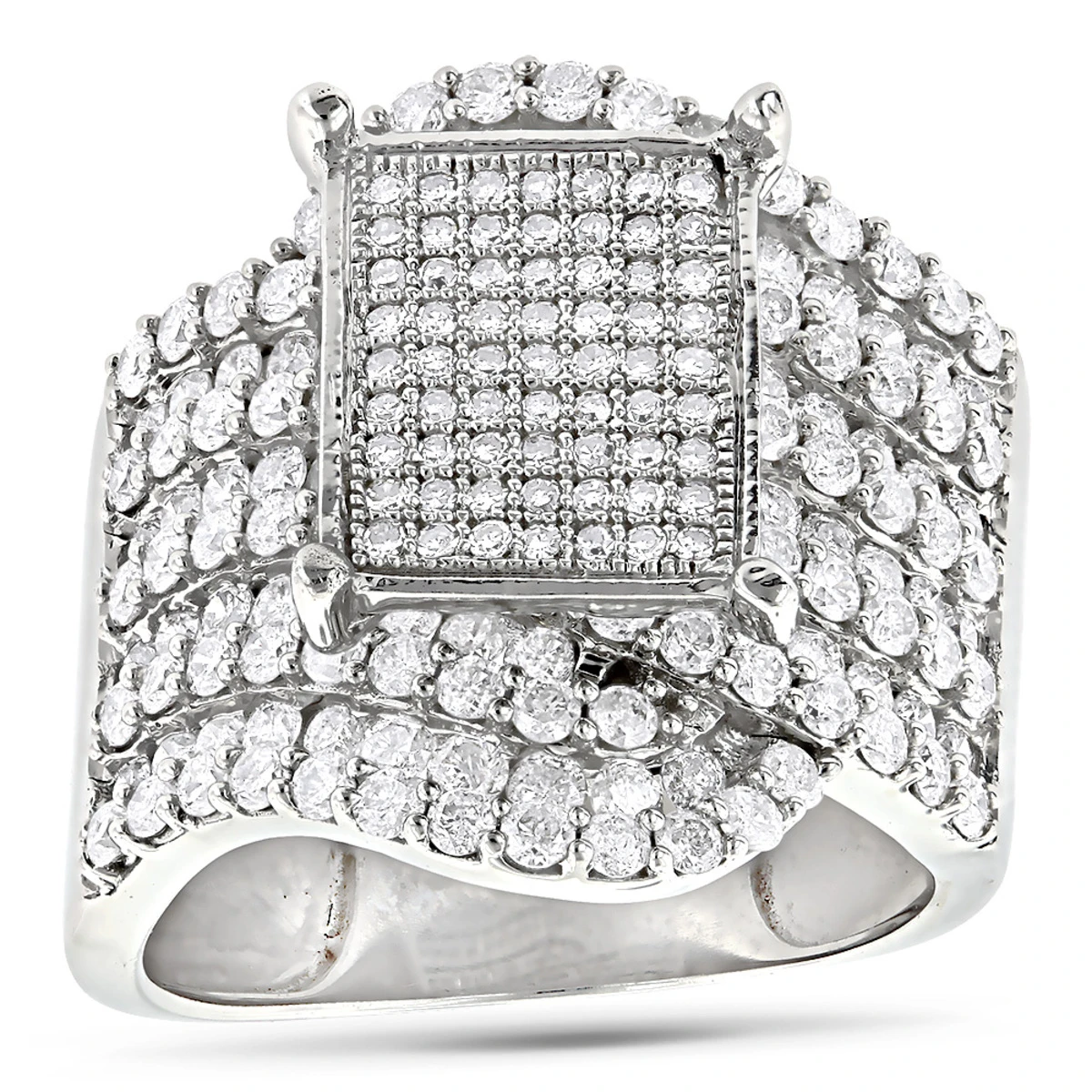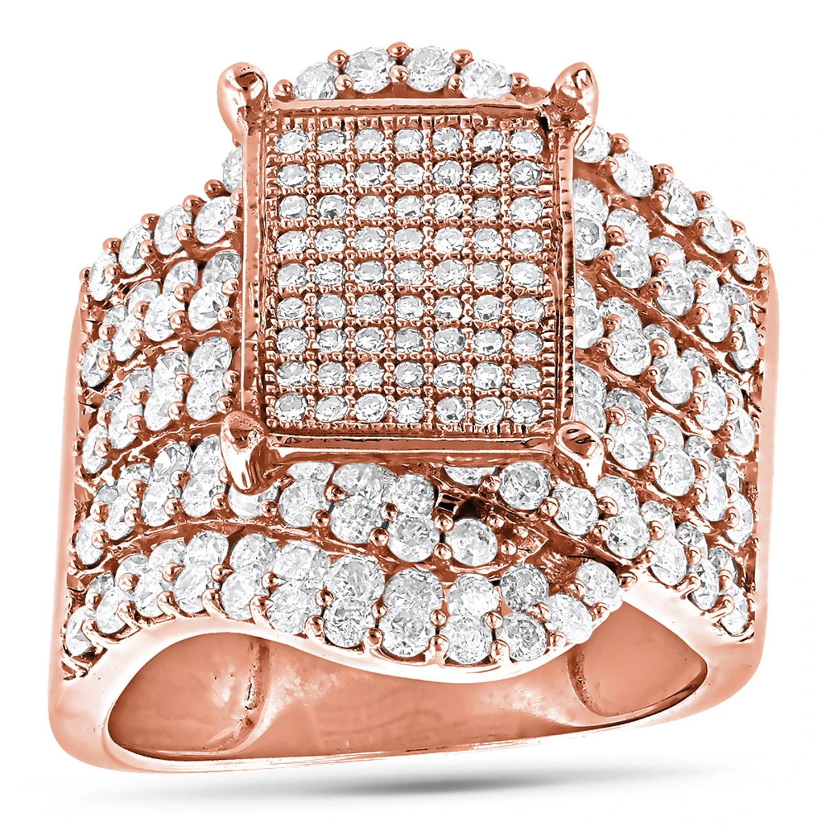 This Ladies Diamond Engagement Ring showcases 2.69 carats of round diamonds. Featuring a unique design and a highly polished gold finish, this women’s diamond ring can be ordered in 14K white, yellow and rose gold; please check availability.