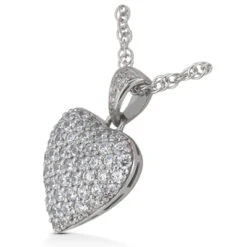 14K White Gold Round Diamond Pave Heart Pendant 0.50ct 3/8in (10mm)