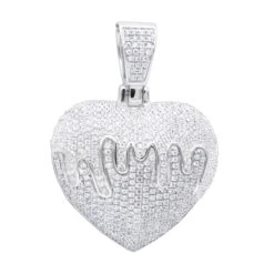14K Yellow Gold Iced Out Dripping Heart Diamond Pendant For Women 1.3ct