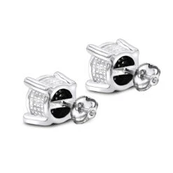 White Pink And Black Diamond Stud Earrings 2.2ct 14K White Gold