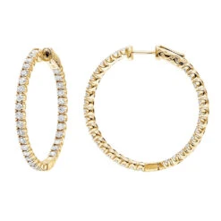 14K White Gold Inside Out Diamond Hoop Earrings For Women 1.5ct