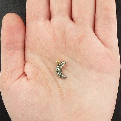 This Sterling Silver Champagne Diamond Moon Pendant showcases 0.18 carats of natural fancy color diamonds. Please note: the chain is for illustration purposes and must be purchased separately. You also can personalize this piece or check we’ve already made and create your own design.