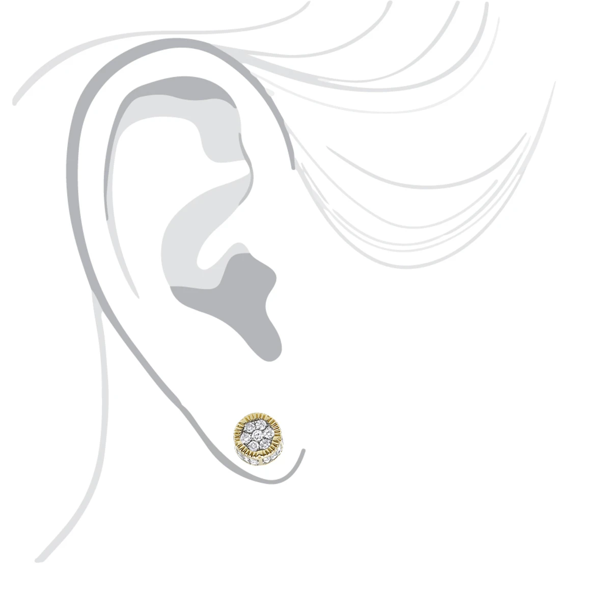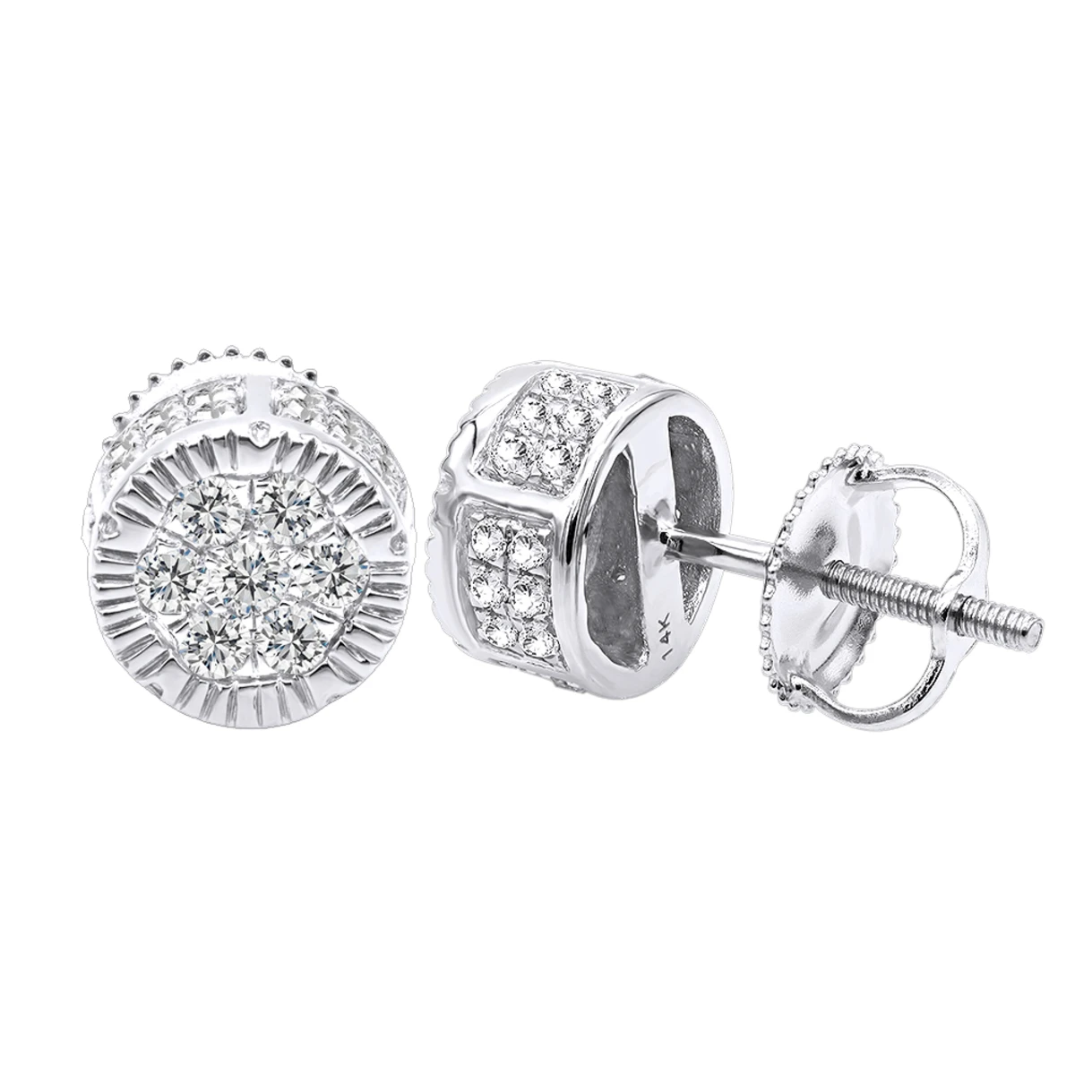 These stylish 14K Solid Gold 2 Carat Look Diamond Stud Earrings by Luxurman showcase 0.5 carats of dazzling round cut white diamonds in cluster setting giving an effect of 2 carat stud earrings; these gorgeous diamond stud earrings have a unique design with pave set diamonds on the sides for even more shine and make a great gift for any occasion and are available in 14K white, yellow and rose gold.