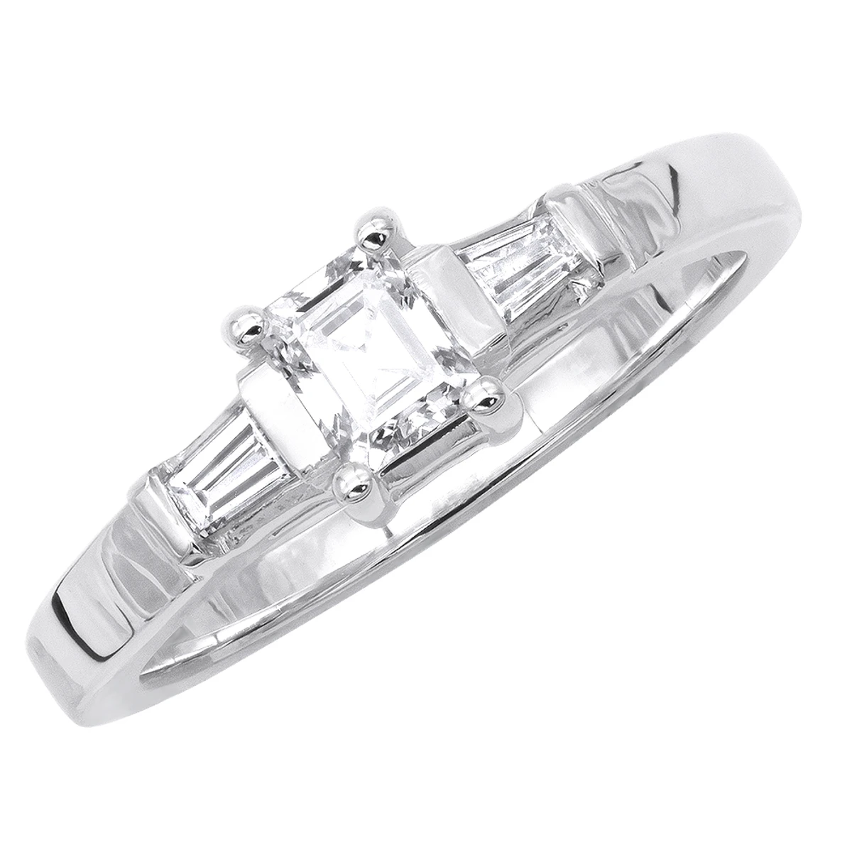 Thin 18K White Gold Diamond Three Stones Engagement Ring 1.20ct