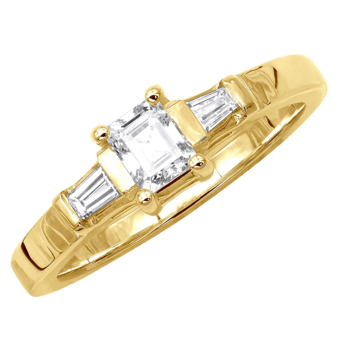 This 14K Gold Baguette Diamond Designer Engagement Ring showcases 0.38 carats of dazzling baguette diamonds and is available in Platinum, 18k or 14k yellow, rose, white gold, various sizes, and can be customized with any color and quality diamonds. Please contact us if you would like to customize it.