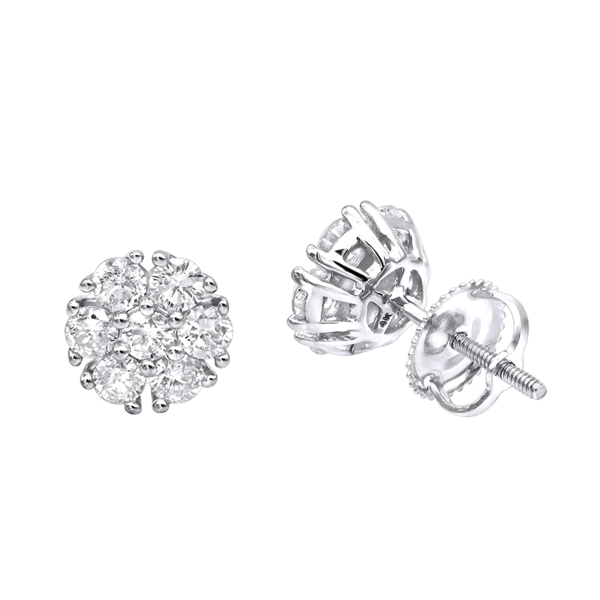 Very Unique 1 Carat Diamond Earrings Studs by Luxurman feature 7 diamonds in a cluster setting set in solid 14k gold frame; these diamond stud earrings feature a unique cluster earrings design with secure screw back closure and are available in 14k white gold, yellow gold and rose gold.