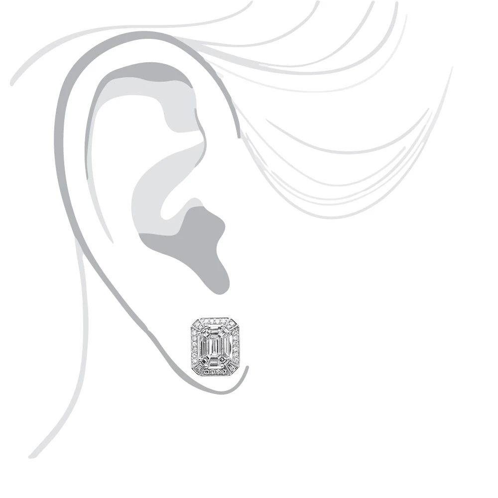 Be the first to review “Unique 18K White Gold Emerald Cut Diamond Stud Earrings Halo Design 2.5ct” Cancel reply