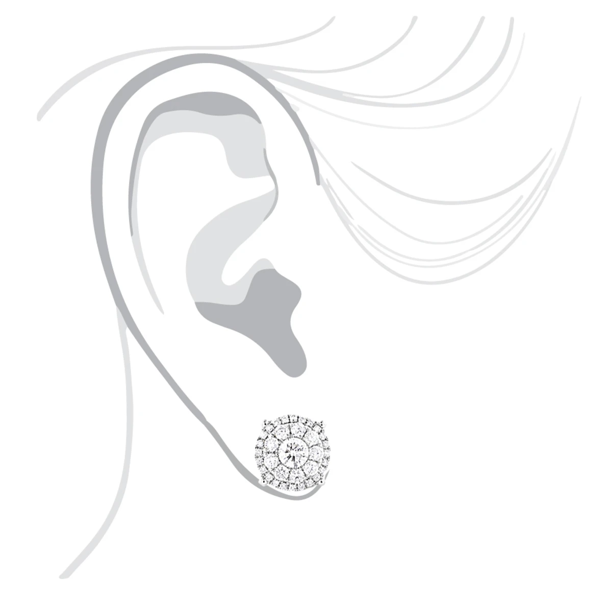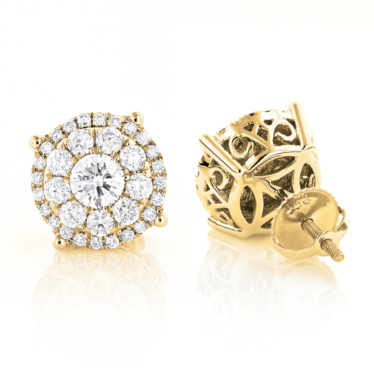 These sparkling Unisex Round Diamond Cluster Earrings Halo Studs in 14K showcase 2 carats of genuine dazzling round diamonds. Featuring a beautiful cluster design and a highly polished gold finish, these versatile diamond stud earrings are available in 14K white, yellow and rose gold.